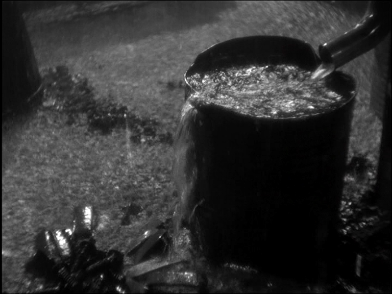 scene plays on the fact that rain (indeed wet in all forms) will bring death throughout